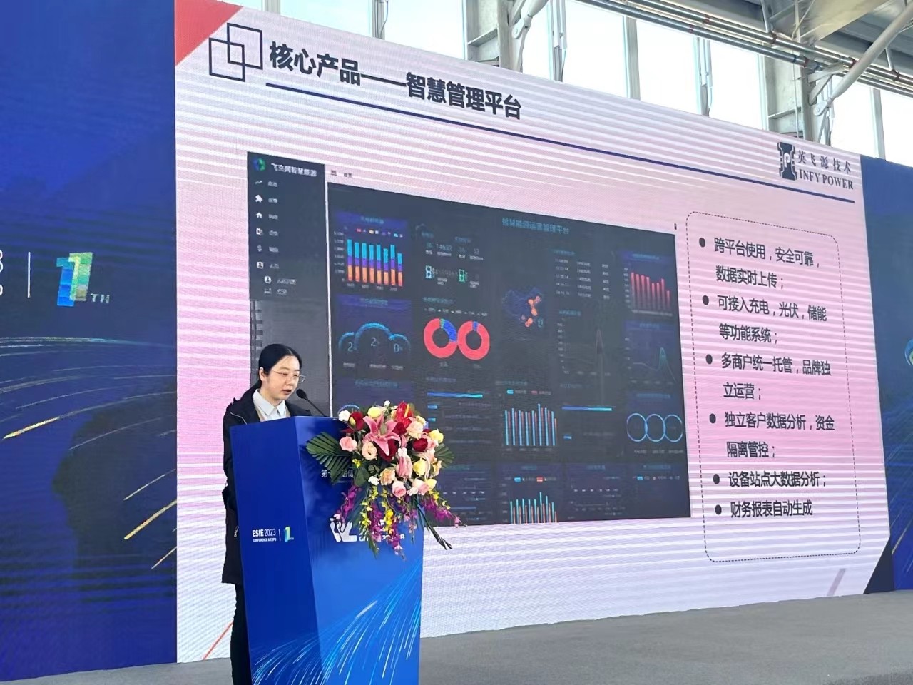 在同期舉行的峰會(huì)論壇上,英飛源應(yīng)邀作《用戶側(cè)“Anyconvert”分布式儲(chǔ)能解決方案》主題演講,介紹了分布式儲(chǔ)能解決方案在儲(chǔ)能及充電領(lǐng)域的應(yīng)用。