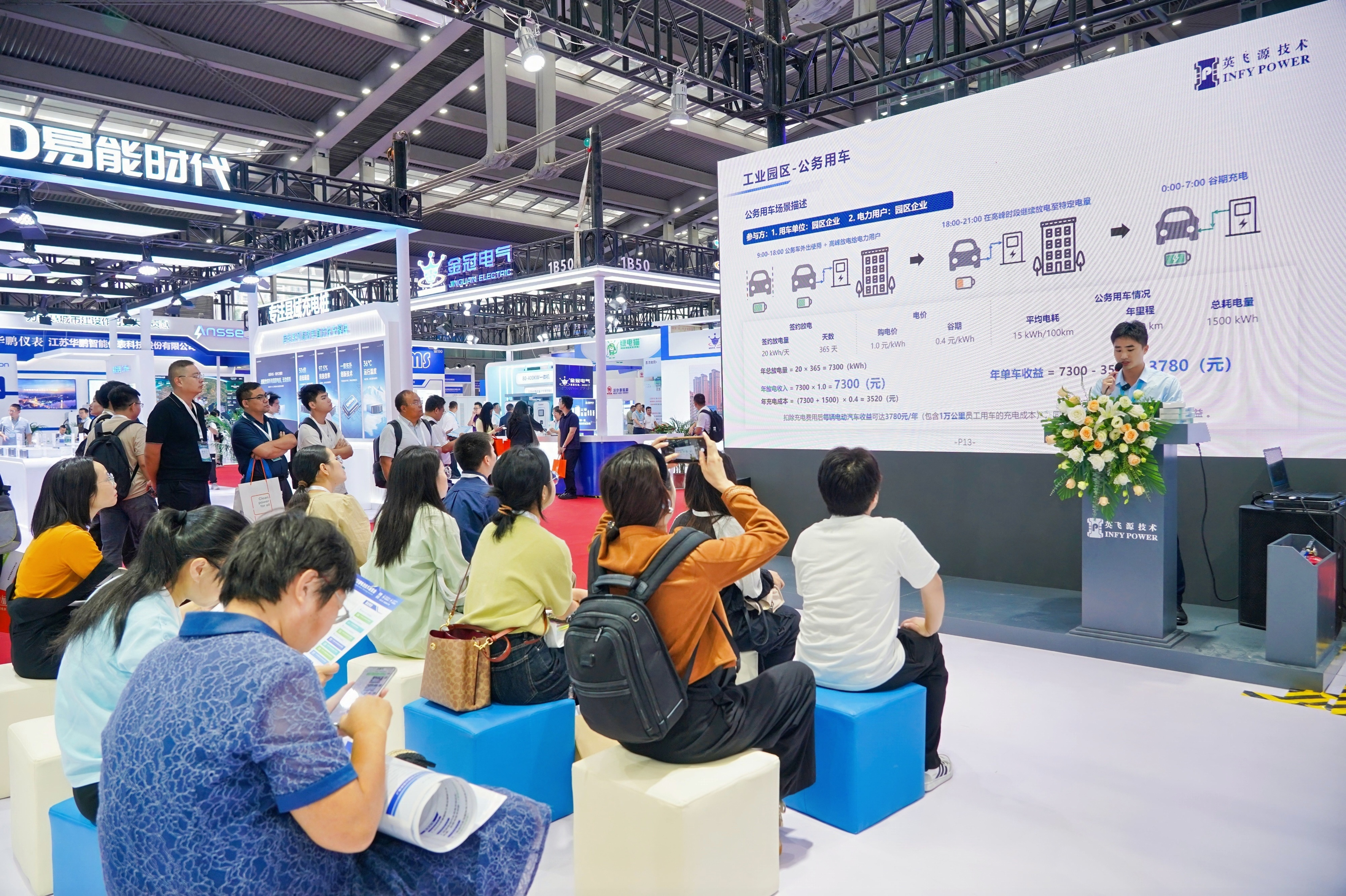 展會現場,英飛源還帶來了系列精彩演講。詳解了V2G技術,分享了600kW V2G系統的技術亮點和應用案例;分析了光儲超充系統的優勢及英飛源的創新解決方案和成功案例;討論了英飛源在綜合能源管理和V2G技術方面的研究成果與應用;介紹了Blue Ozean全液冷解決方案的設計、技術優勢和環境適應性,以及其滿足不同場景充電需求的能力。最后,還與現場觀眾進行了深入交流與討論。