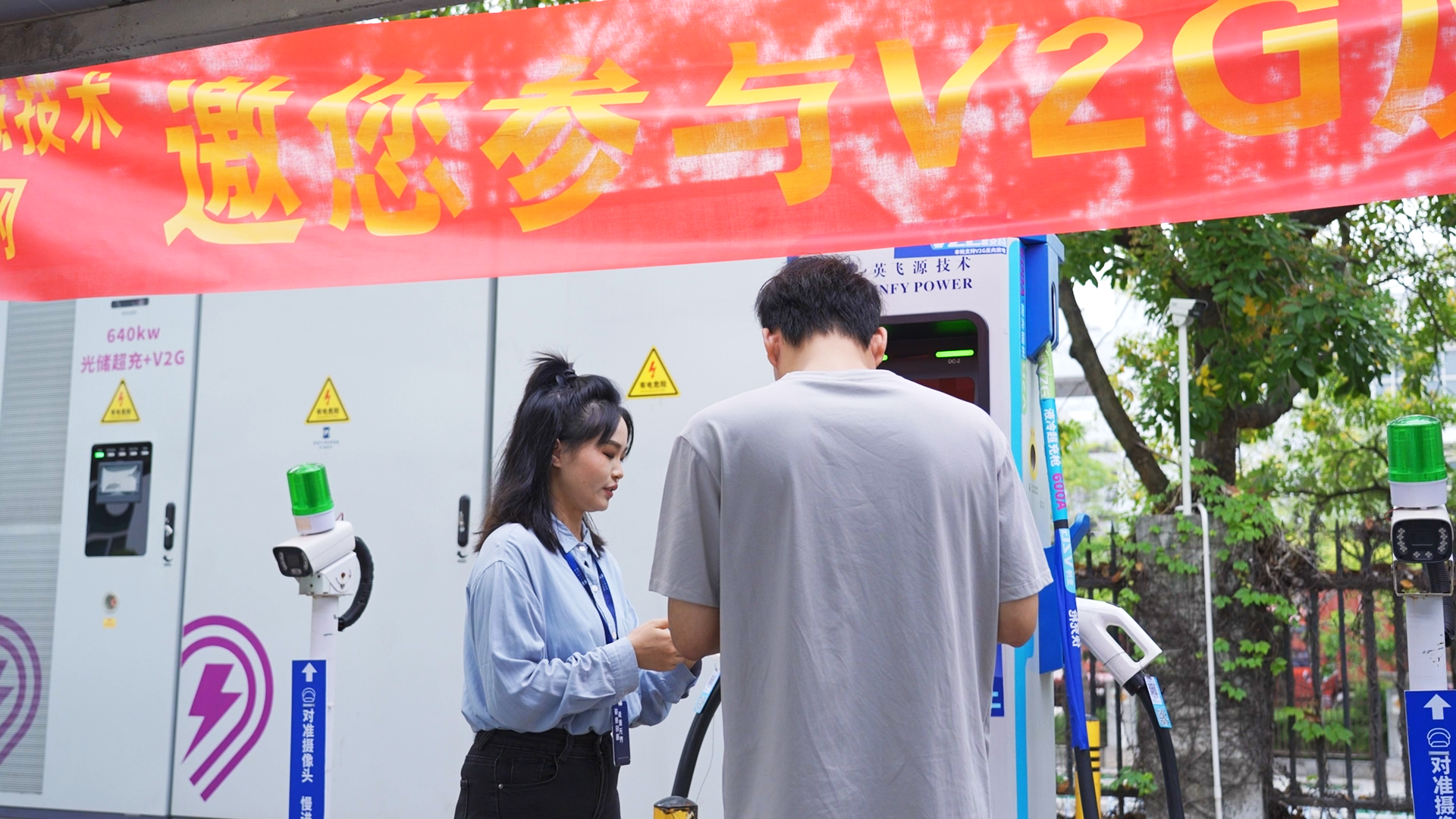 活動現場,車主從聽說V2G,到了解V2G,再通過“飛充網智慧能源小程序”親自嘗試放電,真實感受高效便捷的放電操作。掃碼進入、選擇充放電模式、啟動設備,操作簡便,放電收益實時到賬。參與的車主表示:“首次嘗試放電,僅5分鐘便獲得7元收益,操作簡單又有補貼,期待活動未來能常態化開展!”通過V2G車網互動技術,新能源車突破了傳統交通工具的邊界,充電站也升級為能源交互樞紐,共同構建起“車-樁-網”聯動的智慧能源網絡。