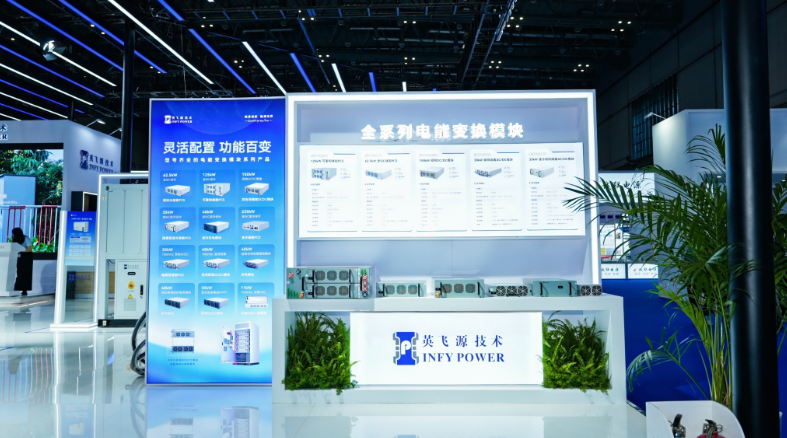 現場還展示了英飛源多款核心電能變換模塊,英飛源同一平臺的模塊產品尺寸兼容,支持各功能模塊混插和無縫迭代升級,滿足定制化系統設計,為各種能源轉換需求提供靈活高效的解決方案。系列電能變換模塊以高功率密度、高轉換效率和優異的穩定性,贏得了業內人士的廣泛好評,為新能源產業的發展提供了強有力的技術支持。