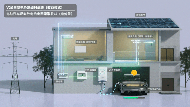 V2H(車到家)在歐美家庭普及,搭配V2H Box后,電動車可成為家庭備用電源:平時削峰填谷節省電費,停電時提供一周家庭用電。