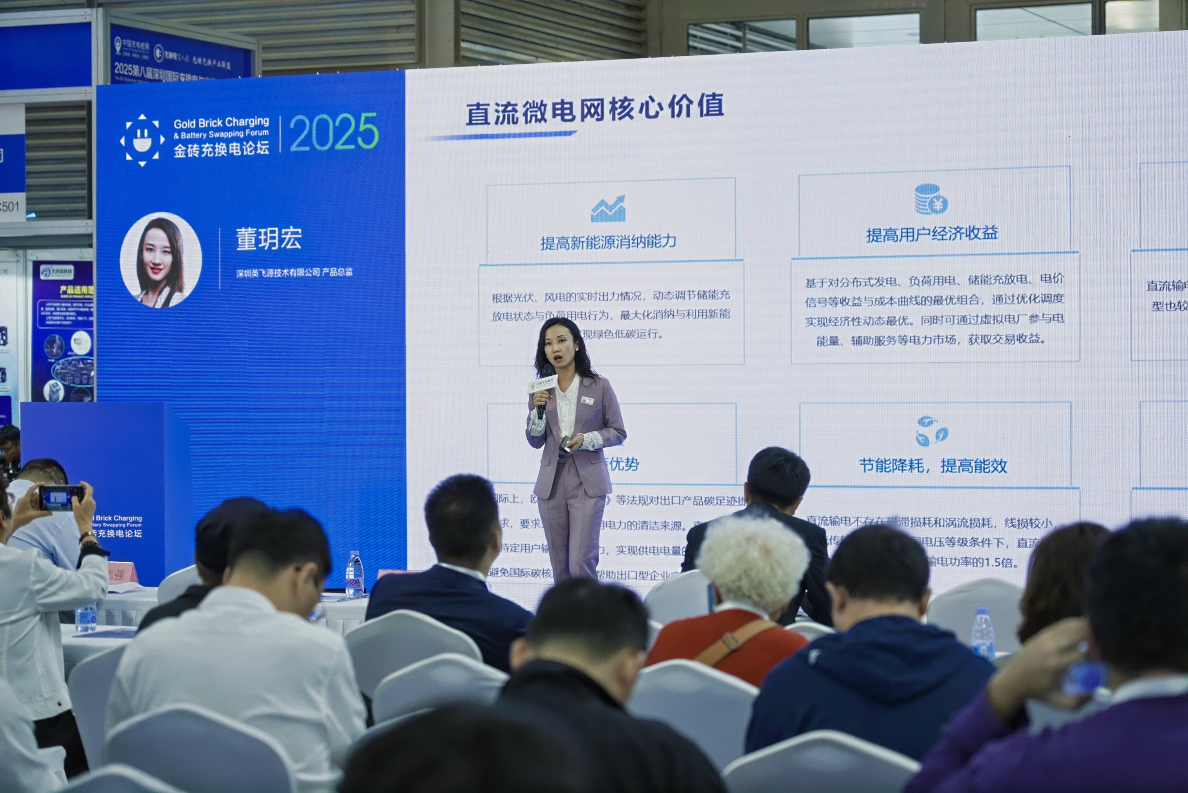 在展會同期舉辦的“充換電年度產品技術發展論壇”上,英飛源產品總監董玥宏帶來了關于“零碳園區綜合解決方案”的演講,從技術架構、場景適配、效益落地等維度,深度解構零碳園區的綜合能源管理體系,同時,分享了英飛源在光儲充一體化、多能互補等領域的創新實踐,為行業破解 “零碳轉型” 痛點提供可落地的技術路徑。